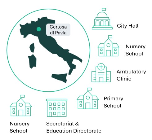 The charming town of Certosa di Pavia is located in the Lombardy region in Italy, just 30km south of Milan. Home to a large monastery and approximately 6,000 inhabitants, it has a vibrant communal life concentrated around a host of publicly owned buildings that provide a space for people to meet, work, and receive public services. However, many of the town’s public buildings had been built in the 1980s and suffered from an unsatisfactory energy performance.